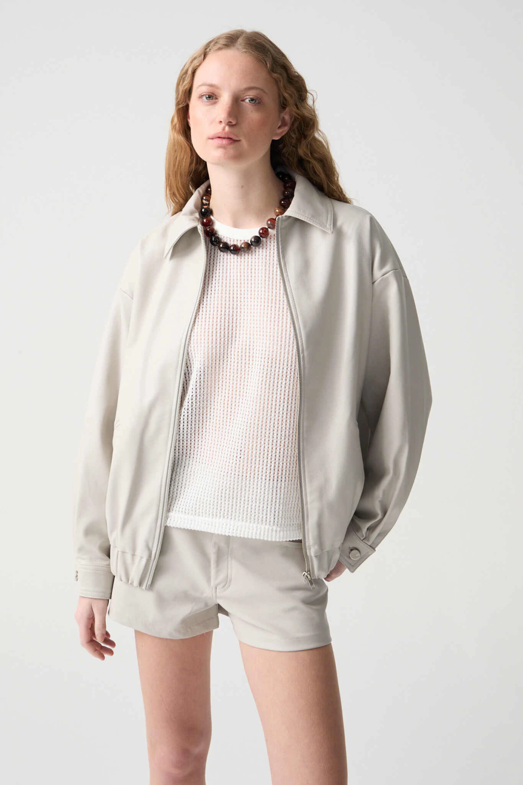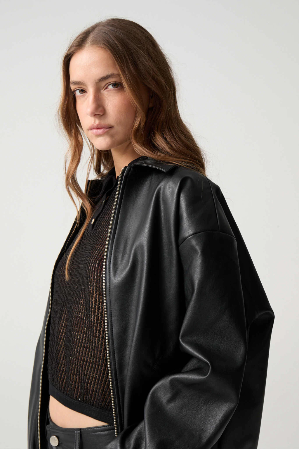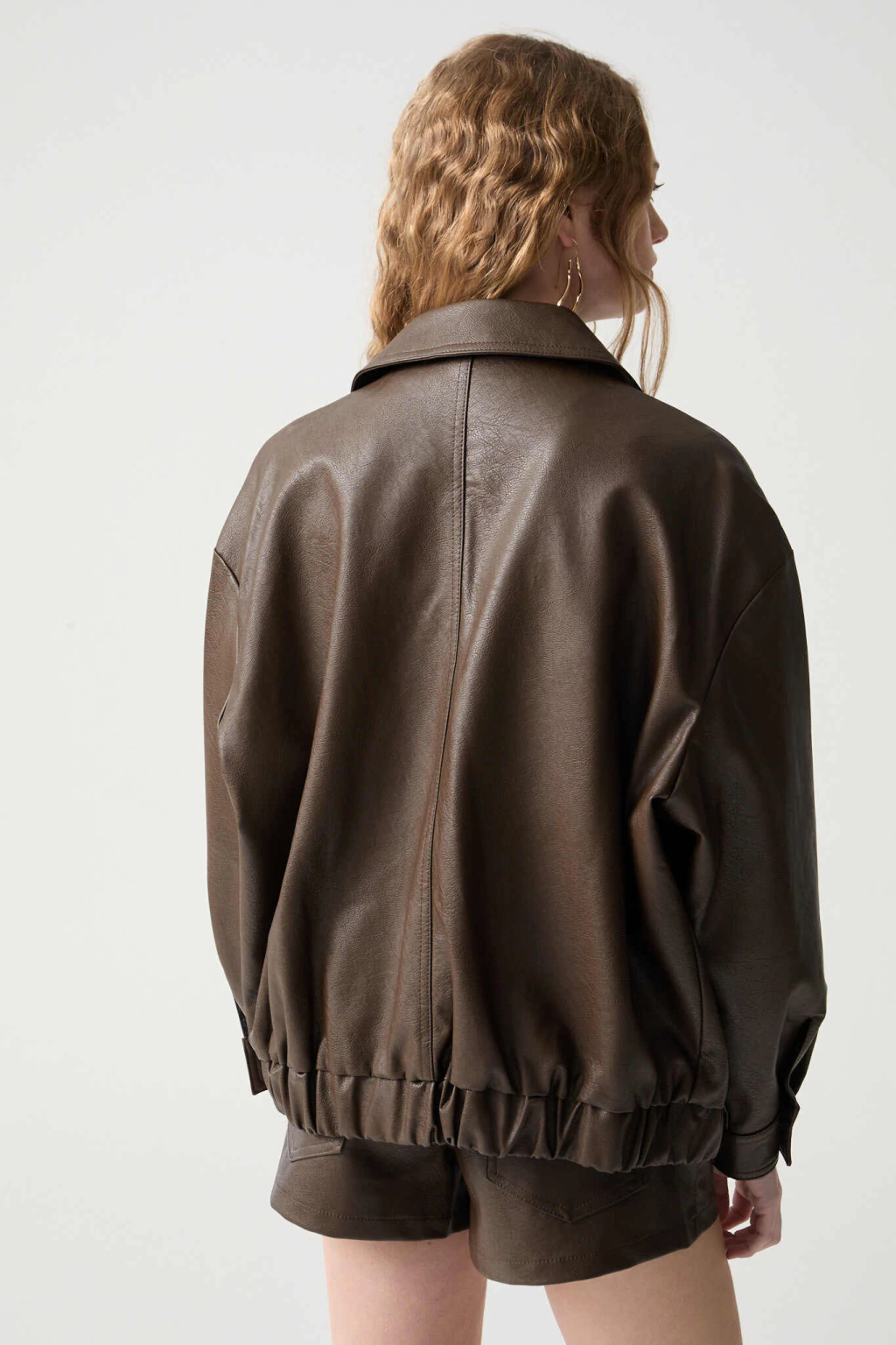 Descubrí la Campera Piacere, una bomber oversize confeccionada en ecocuero que combina estilo y comodidad. Su cierre metálico delantero facilita el ingreso, mientras que el elástico en el ruedo asegura un ajuste perfecto. Además, cuenta con prácticos bolsillos laterales para mayor funcionalidad. Ideal para un look moderno y urbano. Código: R26VCM350.