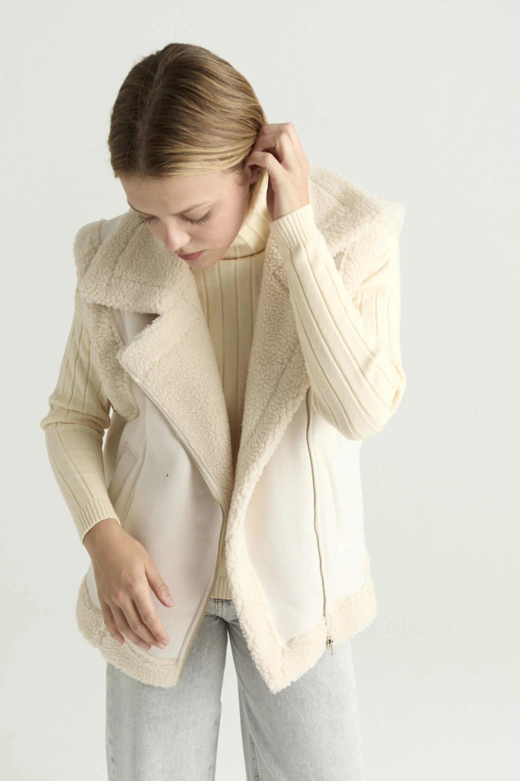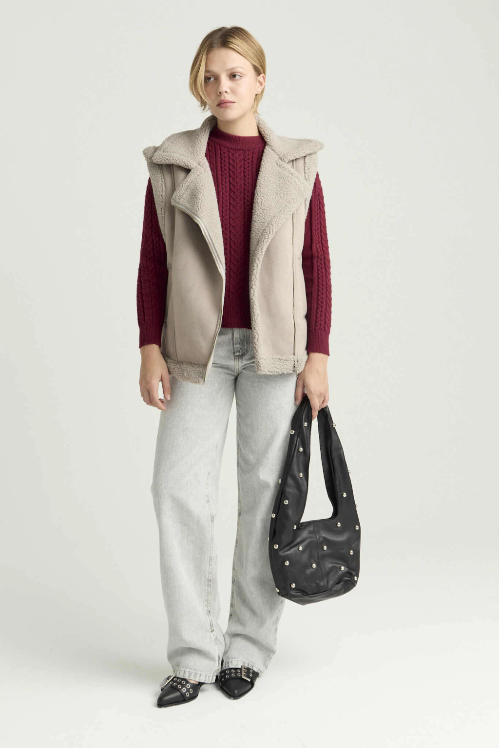 Descubrí el Chaleco Bree, una prenda que combina estilo y funcionalidad. Confeccionado en 86% poliéster y 14% PU, presenta un diseño tipo biker medio over con suave corderito y detalles en suede. Cuenta con prácticos bolsillos delanteros y solapas que realzan su carácter moderno. Ideal para complementar tus looks de temporada con confort y personalidad. ¡No te lo pierdas! R25ICH353