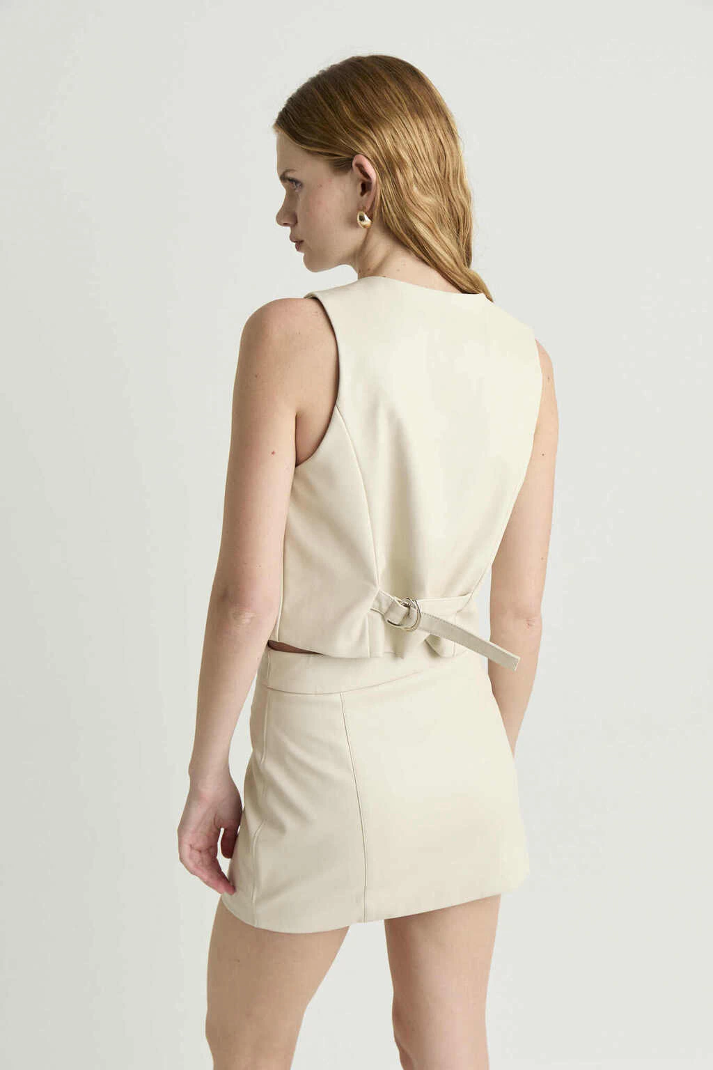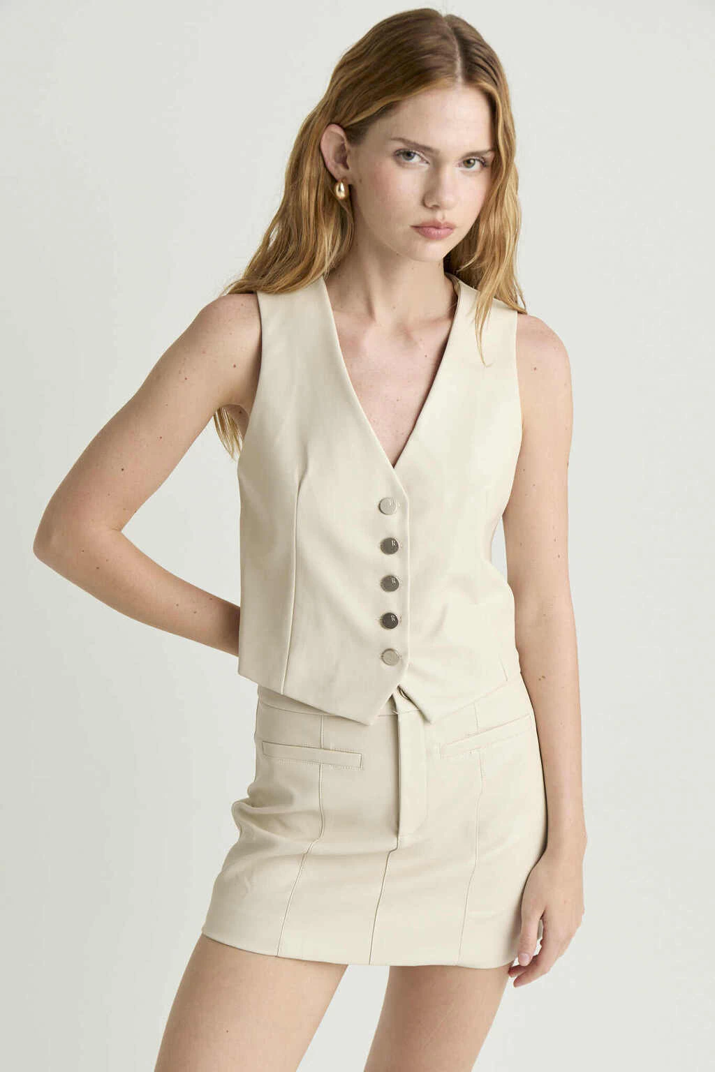 Descubrí el CHALECO DANTE, una prenda excepcional que combina estilo y confort. Este chaleco sastrero está confeccionado en un textil similar al cuero, forrado y con broches metálicos de zamak que añaden un toque de sofisticación.