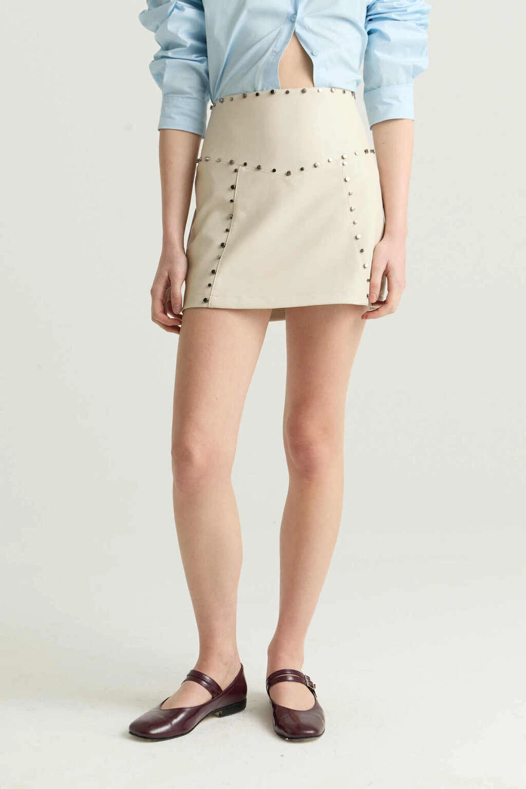 Descubrí la FALDA JUPE, una prenda imprescindible para tu guardarropa. Esta minifalda en simil cuero está forrada y cuenta con un recorte en cintura tipo faja, que resalta tu figura de manera elegante. Su diseño incluye un recorrido de tachas en combinación, aportando un toque moderno y audaz. Confeccionada en 100% PU, la FALDA JUPE es perfecta para cualquier ocasión, desde salidas informales hasta eventos especiales. ¡No te la pierdas y sumala a tu colección! R25VFA663