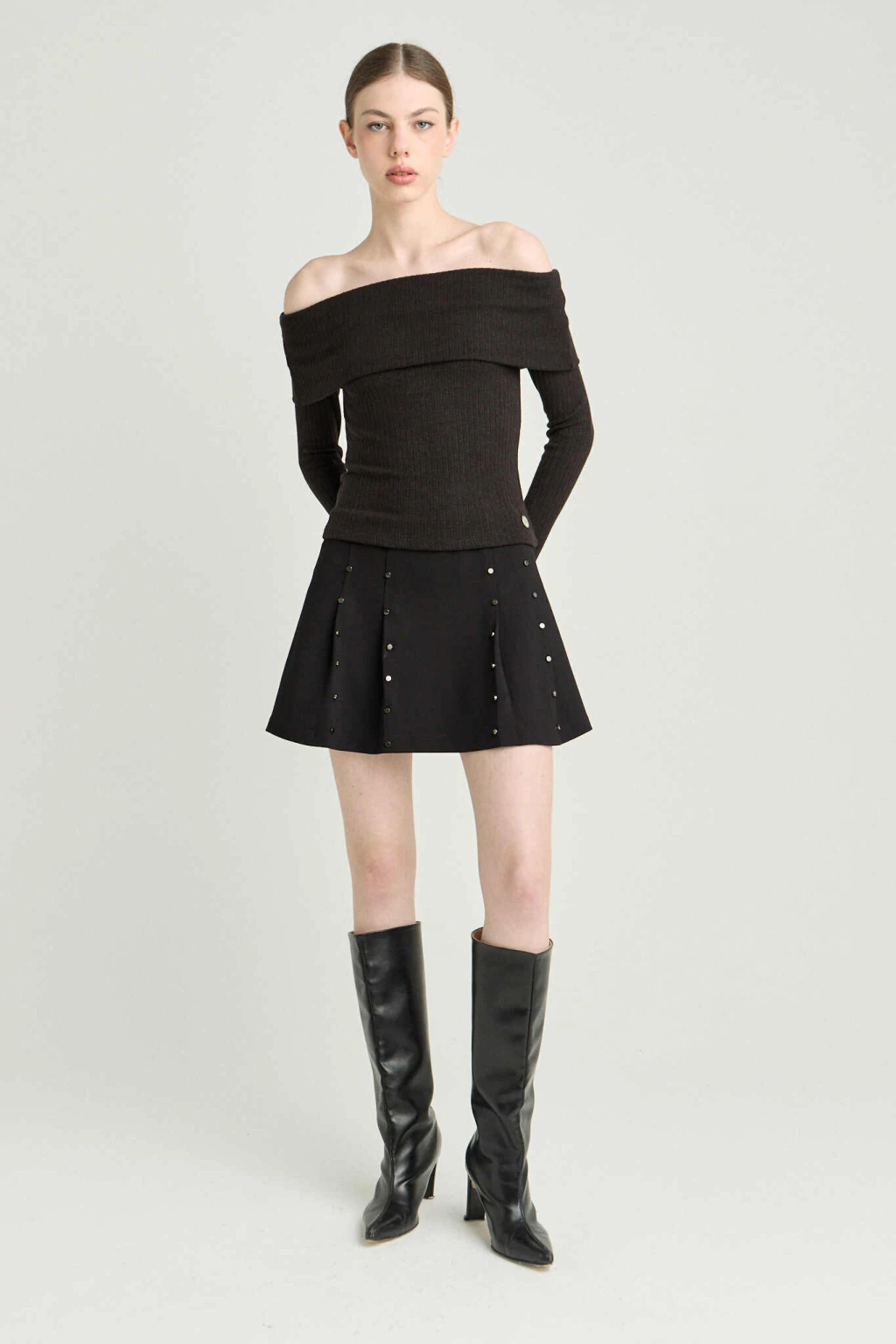 Descubrí la FALDA MINI DE PUNTO ROMA, una prenda que aporta comodidad y estilo a tu guardarropa. Confeccionada con un 68% de viscosa, 4% de elastano y 2% de nylon, esta falda elastizada se adapta perfectamente a tu figura. Su diseño cuenta con tachas que realzan su atractivo, y un elástico en la cintura para mayor confort. Ideal para combinar con diversas blusas y calzado, ¡no te quedes sin la tuya! R25IFA652