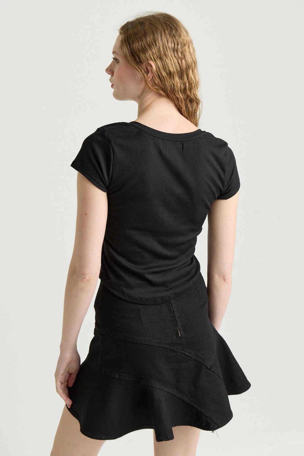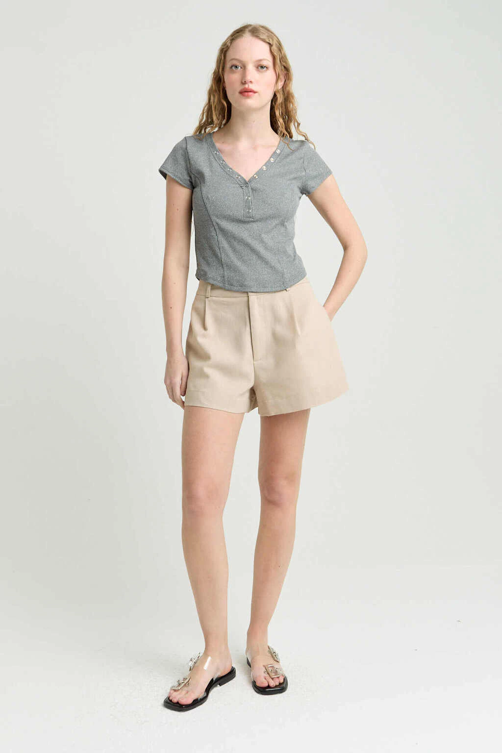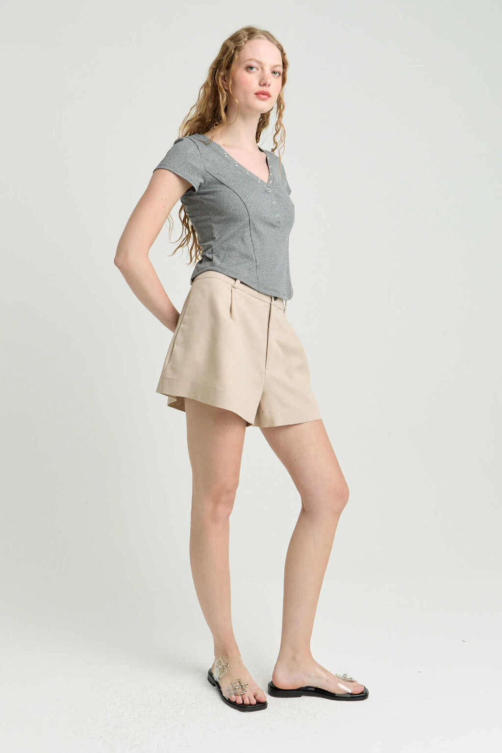 Descubrí la REMERA RIVIERE, una prenda esencial para quienes buscan un estilo moderno y cómodo. Esta remera de manga corta cuenta con un escote tipo en V adornado con broches aro metálicos, que le otorgan un toque distintivo. Los recortes corseteros en el cuerpo realzan la figura, brindando un calce favorecedor. Confeccionada en una mezcla de 96% poliéster y 4% elastano, garantiza comodidad y elasticidad. Ideal para combinar con jeans o faldas, ¡no te quedes sin la tuya! Disponible en varias tallas. R25VRE141